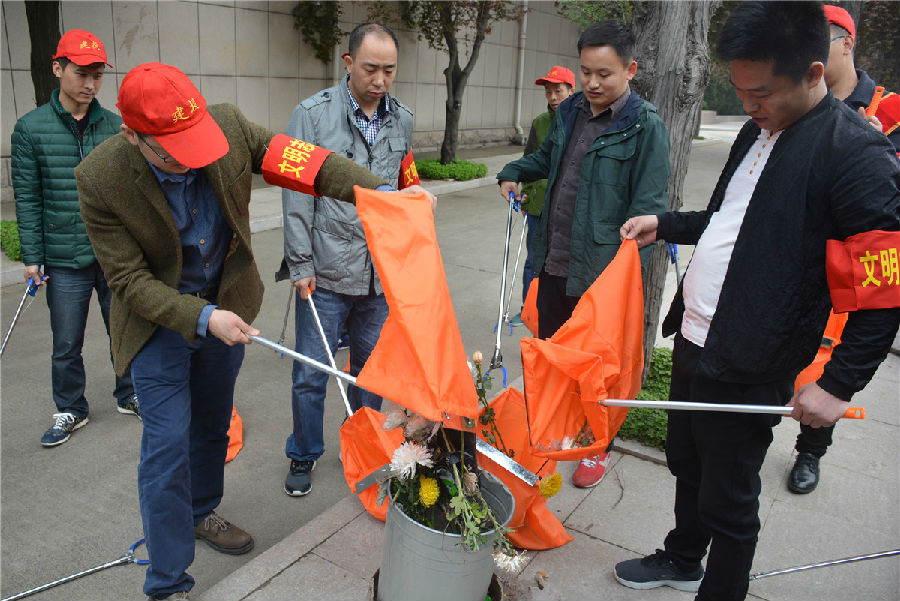 三、開展“倡議文明緬懷,減少廢棄污染”拾撿垃圾志愿服務(wù)活動(dòng)。緬懷先烈活動(dòng)結(jié)束后,市建投公司志愿者們?cè)诹沂苛陥@內(nèi)開展“倡議文明緬懷,減少廢棄污染”拾撿垃圾志愿服務(wù)活動(dòng)。每位志愿者都手持垃圾鉗,認(rèn)真將散落在紀(jì)念碑前以及隱藏在雜草中的廢棄鮮花、飲料瓶、紙張等垃圾拾撿起來放入提前準(zhǔn)備好的垃圾袋中。活動(dòng)持續(xù)一個(gè)小時(shí),志愿者們?cè)诩赖煜攘业耐瑫r(shí)以自己的實(shí)際行動(dòng)表達(dá)崇敬之情,并倡導(dǎo)以獻(xiàn)一束花、敬一杯酒、植一棵樹、清掃墓碑等方式寄托哀思,將祭拜逝者的傳統(tǒng)習(xí)俗以更加環(huán)保、健康、安全、文明的方式表達(dá),營造文明祭祀的良好氛圍。