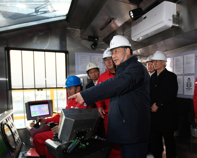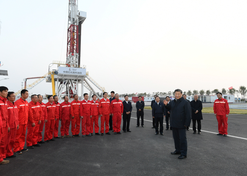 離開(kāi)研究院,習(xí)近平來(lái)到位于東營(yíng)市萊州灣的勝利油田萊113區(qū)塊,了解二氧化碳捕集、利用與封存技術(shù)研發(fā)應(yīng)用情況。他登上二層鉆井平臺(tái),察看鉆井自動(dòng)化設(shè)備,走進(jìn)操作室,同正在作業(yè)的工人親切交流。今年是勝利油田發(fā)現(xiàn)60周年。習(xí)近平代表黨中央向?yàn)槲覈?guó)能源事業(yè)作出貢獻(xiàn)的石油工作者們表示崇高敬意。習(xí)近平叮囑大家繼承和發(fā)揚(yáng)老一輩石油人的革命精神和優(yōu)良傳統(tǒng),始終保持石油人的紅色底蘊(yùn)和戰(zhàn)斗情懷,為社會(huì)主義現(xiàn)代化建設(shè)事業(yè)作出更大貢獻(xiàn)。