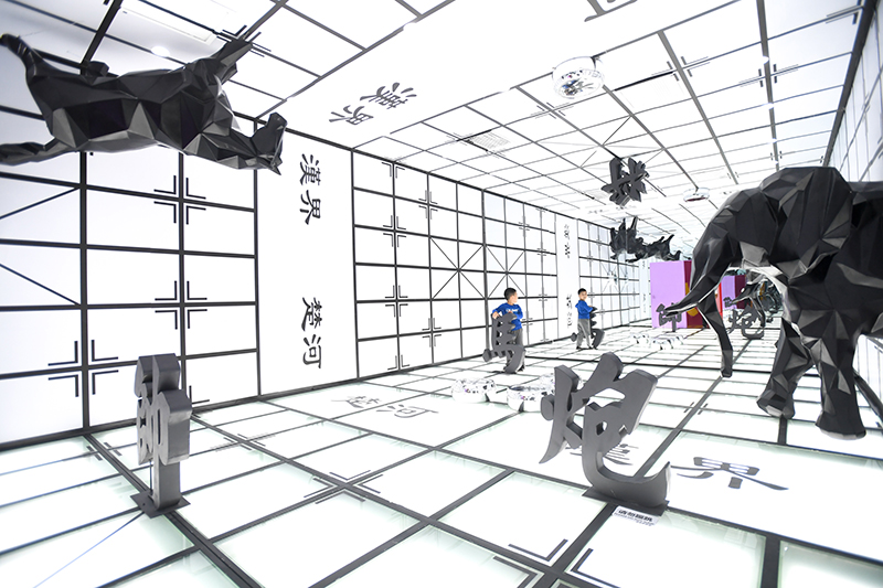 2019年9月21日,小朋友在湖南省長沙市“字在其中”漢字國潮藝術(shù)展上參觀。新華社記者 陳澤國 攝