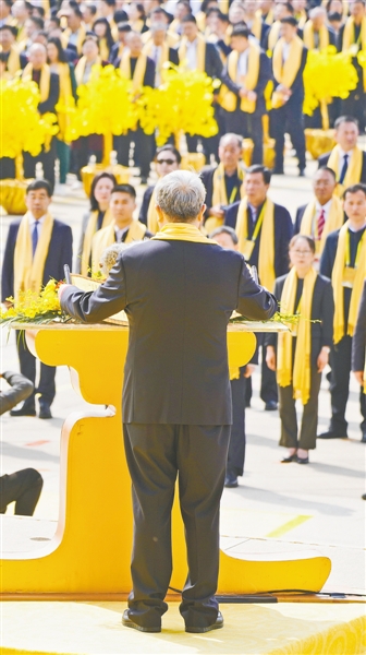 凈手上香。郝龍斌,全國人大代表、中國和平統(tǒng)一促進會香港總會常務副會長凌友詩,英國荷柏穎中藥公司總裁、第一位擔任英國市政廳閣員高職的華裔官員王臺生,泰國中華總商會主席林楚欽,緬甸中華總商會榮譽會長楊釧玉,華為集團高級副總裁楊瑞凱,深圳國際控股有限公司董事會主席李海濤,優(yōu)必選科技股份有限公司董事會主席、執(zhí)行董事兼行政總裁周劍,全國人大代表、全國勞模、好想你健康食品股份有限公司董事長石聚彬走到臺前,凈手上香。