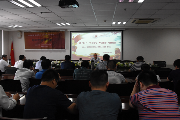 6月29日,在習(xí)近平總書記“七一”講話發(fā)表兩周年、建黨97周年即將到來之際,集團(tuán)公司舉辦“迎‘七一’‘不忘初心,牢記使命’專題黨課”,黨委書記、董事長、總經(jīng)理秦廣遠(yuǎn)同志結(jié)合黨的十九大精神和習(xí)近平新時(shí)代中國特色社會(huì)主義思想帶領(lǐng)大家重溫習(xí)總書記“七一”重要講話,公司領(lǐng)導(dǎo)、各支部書記、全體黨員和機(jī)關(guān)員工參加了活動(dòng)。