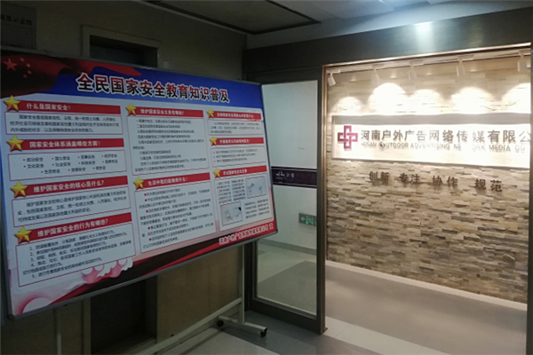 三、豐富活動(dòng)形式,營(yíng)造濃厚氛圍。集團(tuán)公司有效運(yùn)用集團(tuán)公司官方網(wǎng)站、微博、微信、展板等集中宣傳國(guó)家安全教育活動(dòng)相關(guān)內(nèi)容,在辦公場(chǎng)所明顯位置設(shè)立宣傳展板三塊,廣泛宣傳國(guó)家安全相關(guān)法律法規(guī)和維護(hù)國(guó)家安全的基本知識(shí),營(yíng)造了良好的活動(dòng)氛圍,不斷提高活動(dòng)的影響力;各項(xiàng)目部、各控股公司分別結(jié)合實(shí)際,通過(guò)宣傳展板、宣傳條幅、電子海報(bào),LED大屏循環(huán)、施工圍擋等多途徑宣傳國(guó)家安全教育活動(dòng),全面覆蓋集團(tuán)全體職工、承建項(xiàng)目全體參建人員。本次宣傳有效覆蓋人數(shù)達(dá)到2000余人。