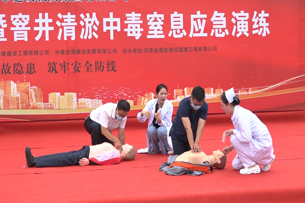五是開展應(yīng)急演練活動。6月23日下午,集團公司市政建設(shè)管理中心在杏賈路市政道路施工現(xiàn)場開展一次窨井中毒窒息應(yīng)急救援演練活動,參加人員共計100余人,涉及公司所有在建市政工程項目參建單位。演練模擬污水井清淤作業(yè)意外中毒為背景展開,并邀請鄭大一附院兩名專家進行急救知識講解和心肺復(fù)蘇教學,取得了非常好的效果
