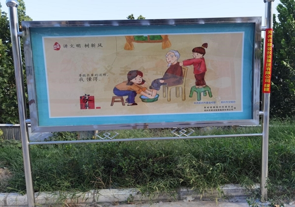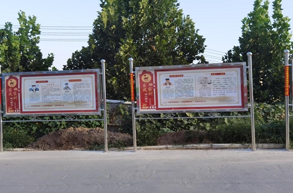 四、設(shè)置宣傳載體,營造文明家園濃郁氛圍。今年,集團公司為郭崗村提供3萬余元幫扶資金幫助其打造了精神文明專欄,分為家風(fēng)家訓(xùn)(名人家風(fēng))專欄,“講文明 樹新風(fēng)”(孝當(dāng)先、傳承家風(fēng))、“文明健康 有你有我”公益廣告等內(nèi)容,使社會主義核心價值觀深刻融入到村民的生產(chǎn)生活和精神世界,形成全體村民的修身行善共識和明禮守法自覺,為促進郭崗村經(jīng)濟健康發(fā)展、構(gòu)建美麗鄉(xiāng)村、文明家園打下良好根基。